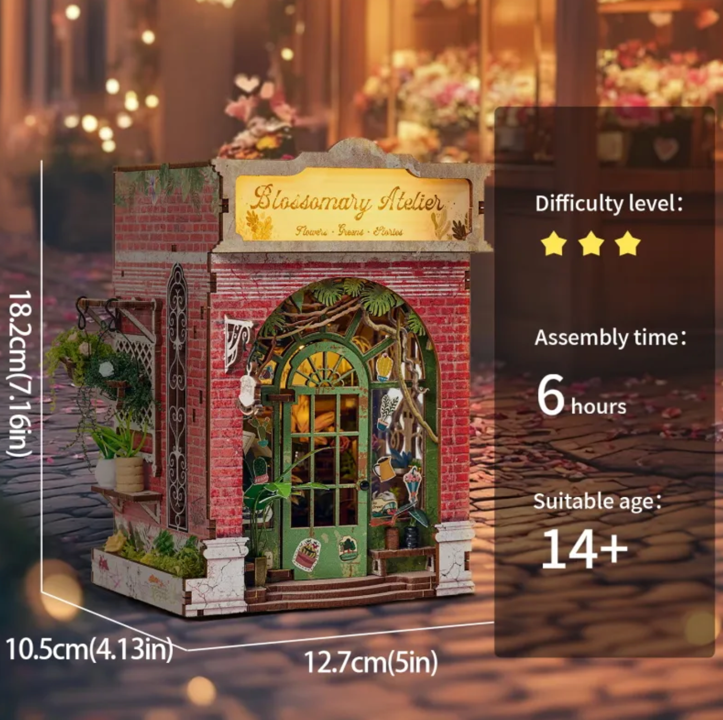 Blossomary Atelier aduce un spațiu floral și artistic în biblioteca ta, cu detalii delicate și iluminare caldă.